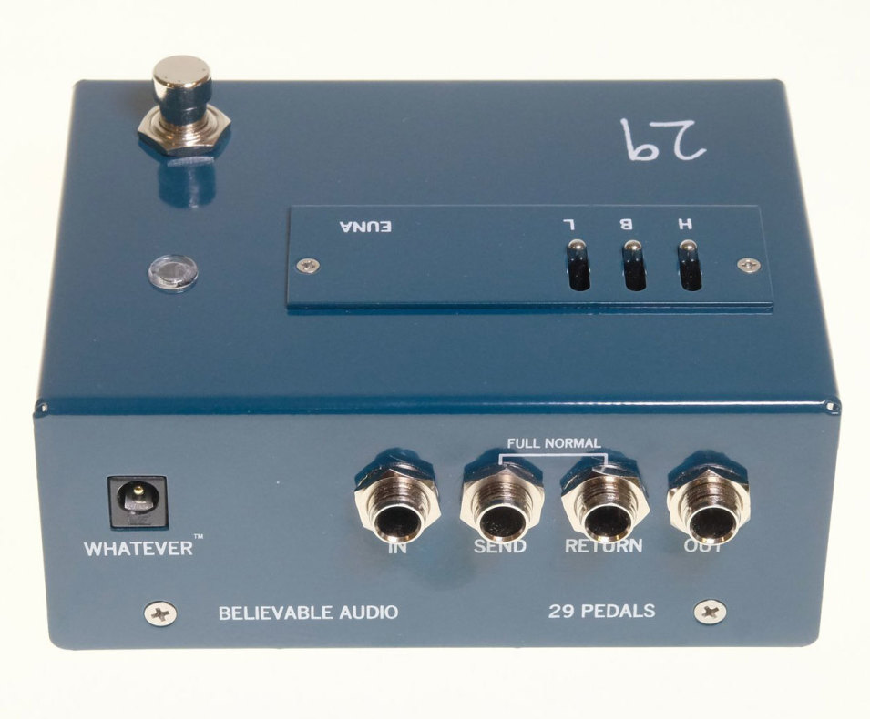 29 Pedals Euna(Elite UNity Amplifier) er en overbygd buffer, filter, jordingssystem, med Pro Audio kvalitet og ikke minst en alternativ signalsti som også enklere tar deg bruke vintage-effekter som f.eks gamle fuzzer og wah-pedaler.